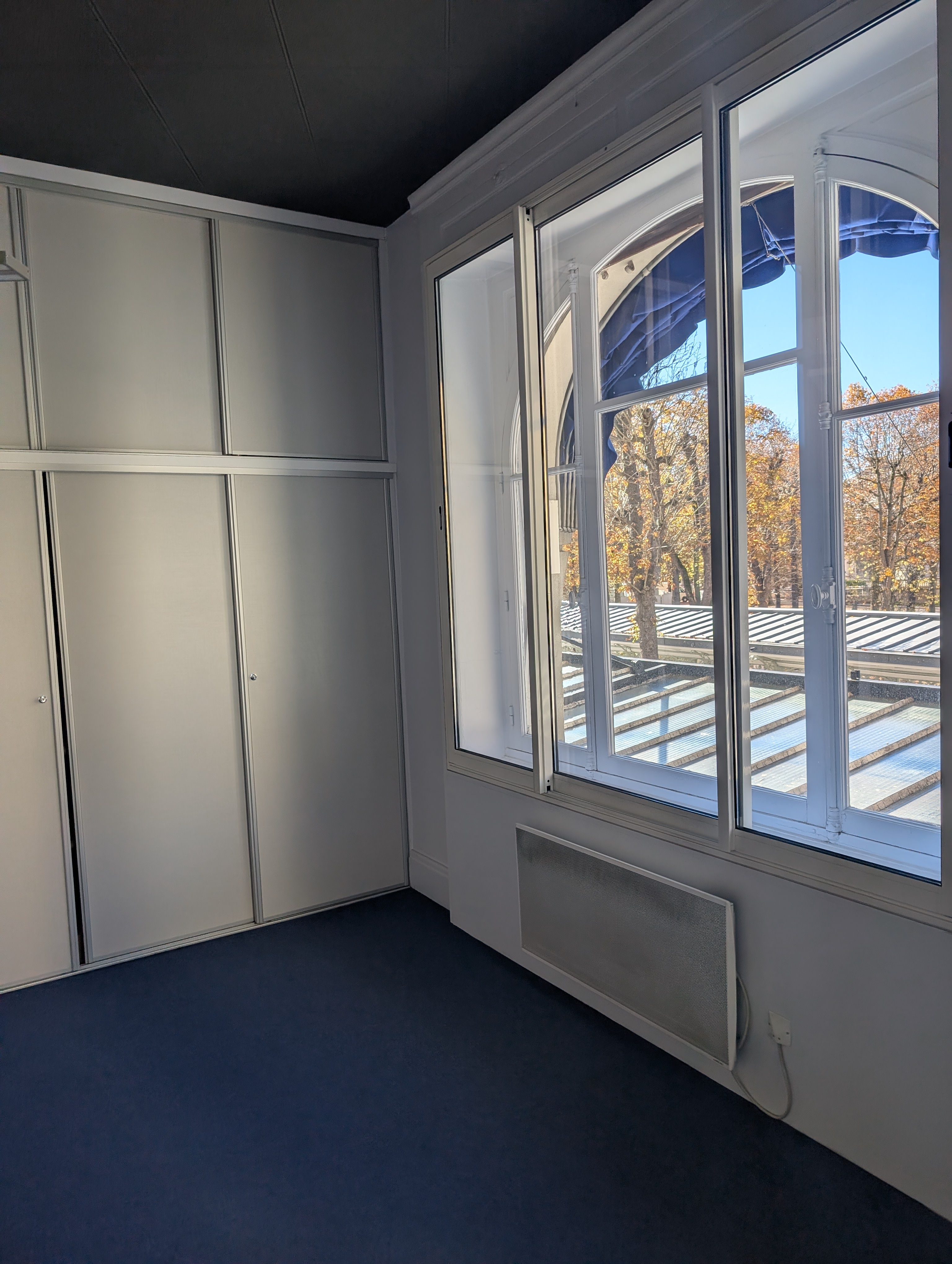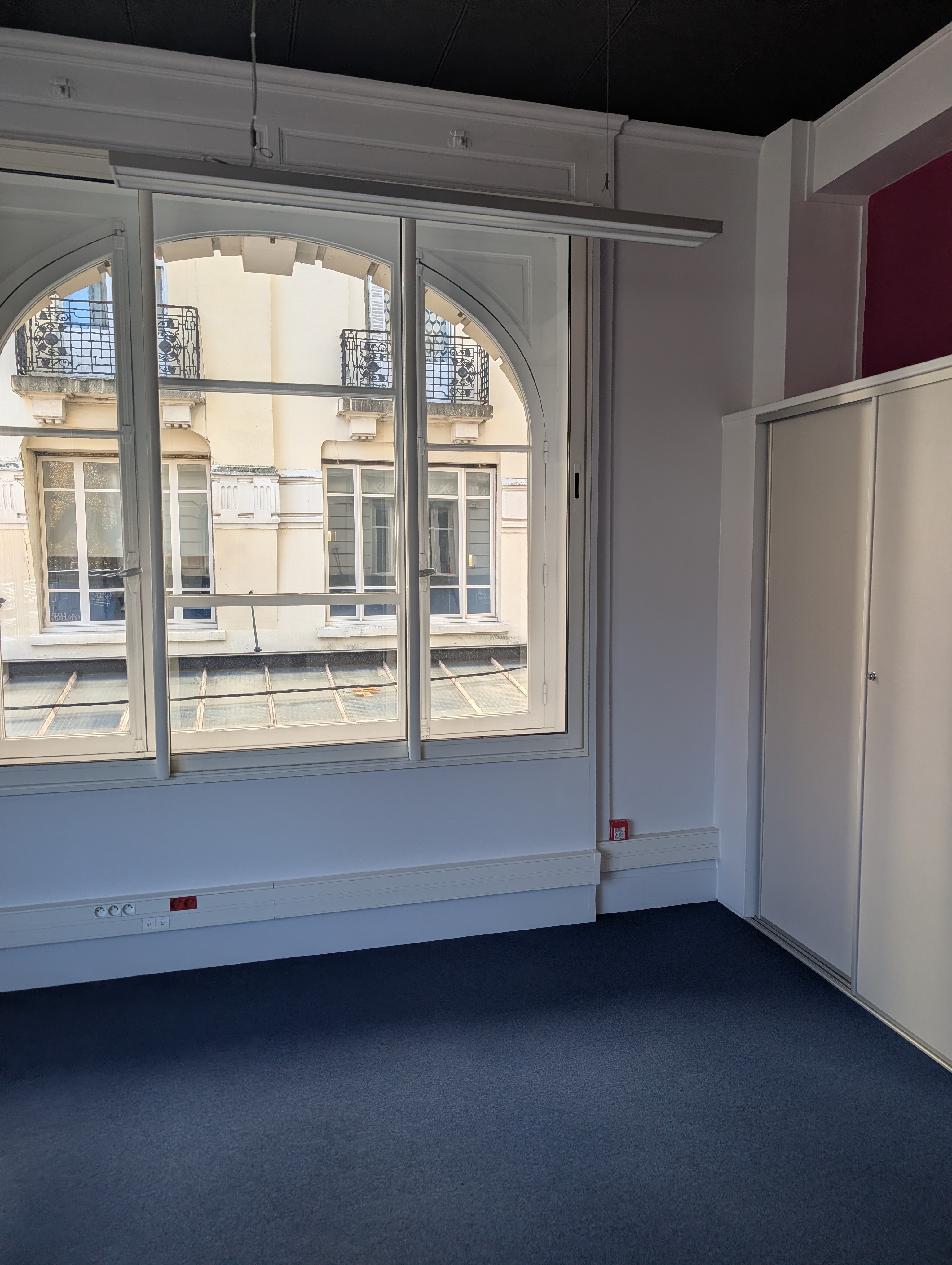 Dans un immeuble de style haussmannien, au 1er étage avec ascenseur, l'ensemble comprend 3 bureaux dont un bureau principal en angle donnant sur les parcs et doté d'un grand placard mural pour archivages, WC.